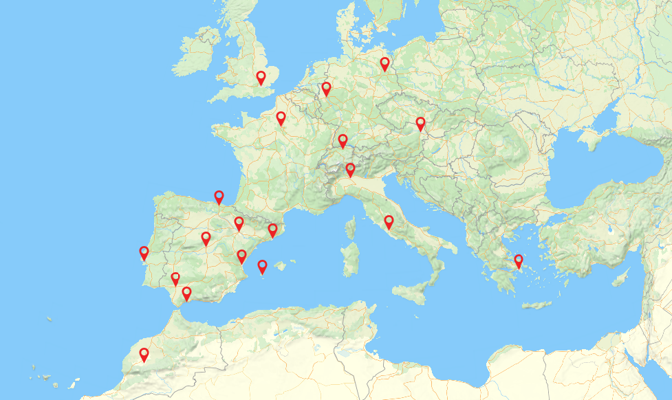 Nos puedes encontrar en algunos de los puntos más vibrantes del mapa: Barcelona, Madrid, Sevilla, Zaragoza, Valencia y Marbella, Bilbao y más allá de nuestras fronteras ya estamos marcando presencia en París, Köln, Berlín, Milán, Marrakech, Roma, Atenas, Viena y Lisboa.
